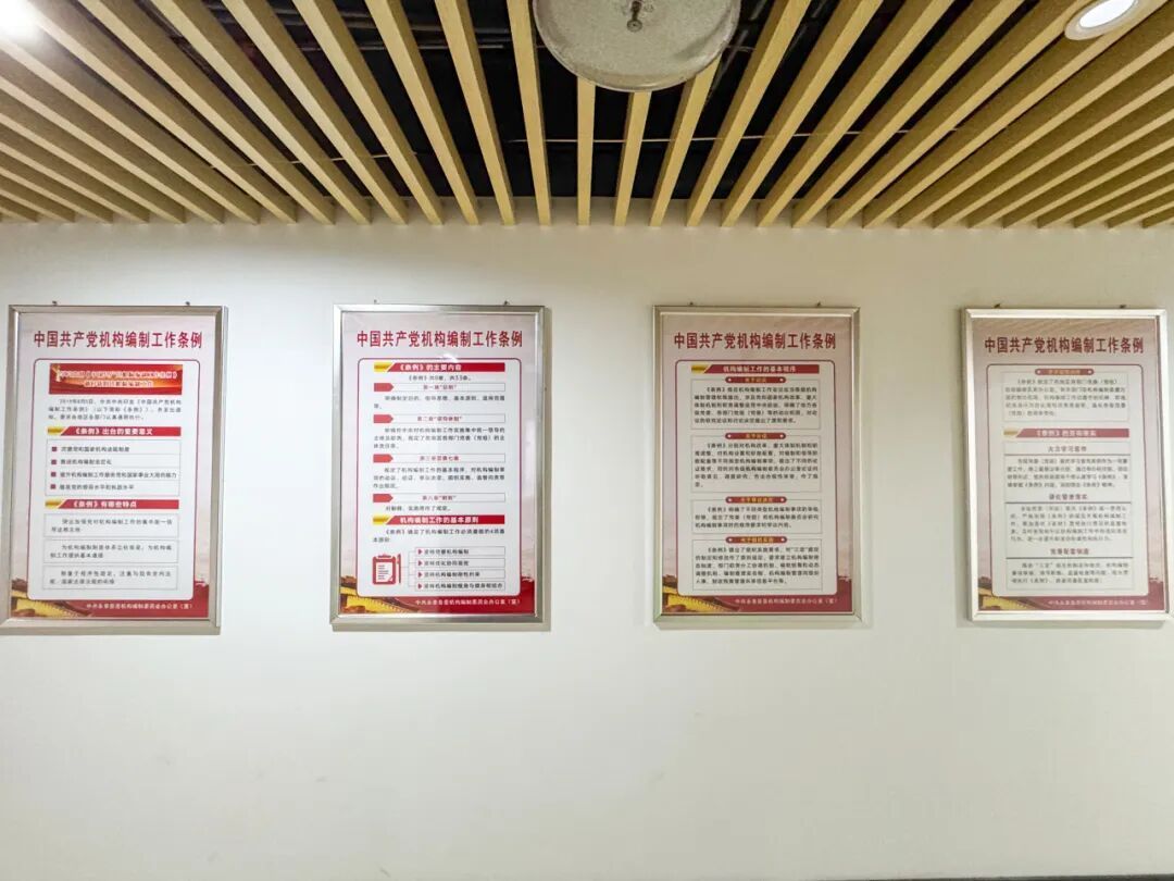 墙上展示近年来县委编办创建的“党建引领 精编优制”、“五微”党建、“四强四队”、“三融”党建等党建品牌。
