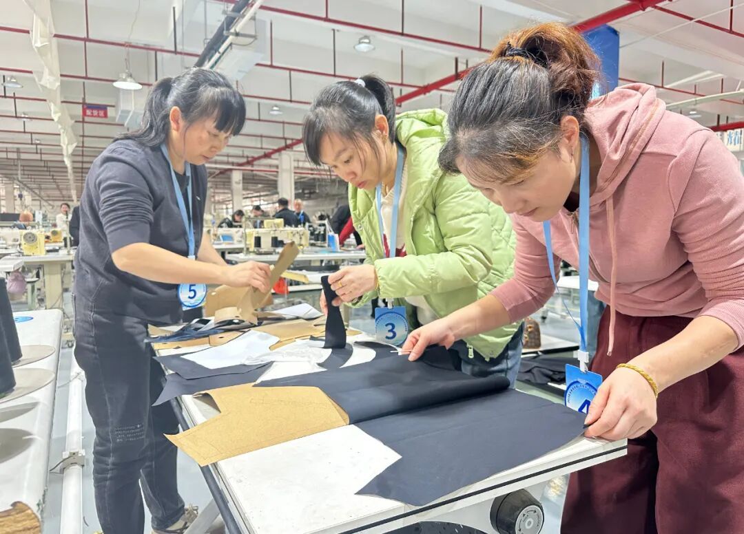 团体赛中 队员们分工明确、默契十足 裁剪、缝纫、整理等环节衔接流畅 将团队协作的优势展现得淋漓尽致 冲锋衣整衣制作赛道上 选手们凝神专注 精准处理复杂的面料拼接与结构设计 在细节把控中诠释着 缝纫工匠的严谨态度与匠心精神