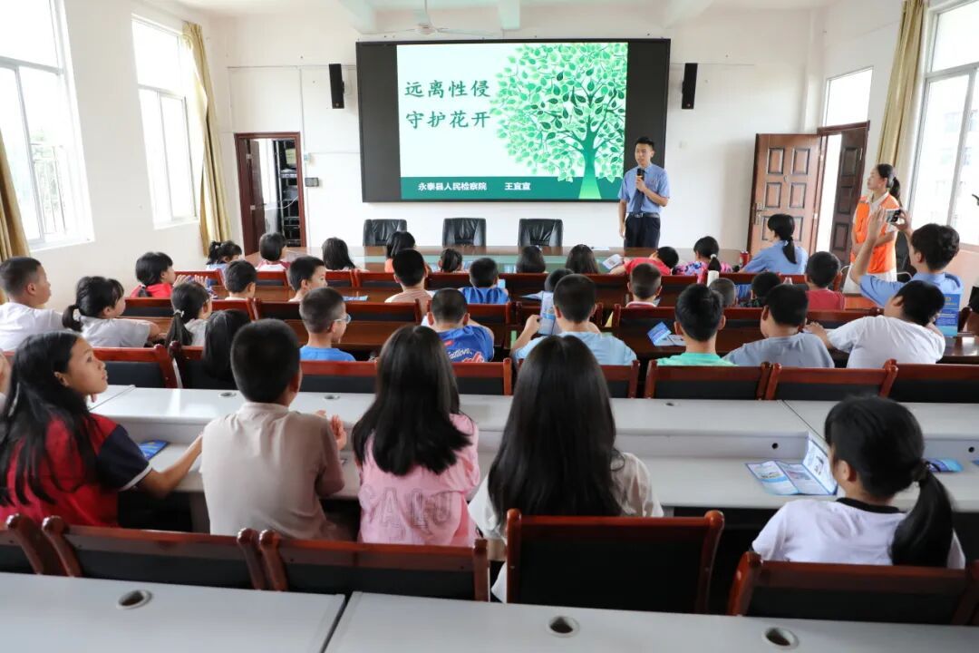 未成年人是国家未来的建设者、民族复兴的接班人,加强未成年人保护是事关国家发展、民族未来的战略性任务。永泰县检察院深入贯彻落实习近平总书记关于“坚持把未成年人思想道德建设作为战略性基础性工作来抓”的重要指示精神,立足检察职能,以司法保护为核心,联动家庭、学校、社会、网络、政府等多方力量,在法治教育、权益保障、协同治理、源头预防等领域精准发力,全面筑牢未成年人健康成长法治防线。 聚焦思想引领与源头预防, 深化“春蕾守护”法治教育工程 围绕未成年人思想道德建设核心要求,针对未成年人防性侵教育这一关键领域,破解传统教育形式单一、覆盖面有限的难题,以“可视化+协同化”模式推动法治教育走深走实。 创新普法载体,打破地域限制。结合未成年人认知特点,制作防性侵普法动画《不能说的“秘密”》,通过案例化叙事、生动化画面,将法律知识与思想道德教育融入其中,引导未成年人树立自我保护意识与法治观念。该作品获县委政法委、县委宣传部、县教育局等多部门联合推广,在全县学校、社区、乡村实现全覆盖传播,有效打破地域限制,让偏远乡镇未成年人也能便捷获取法治知识。