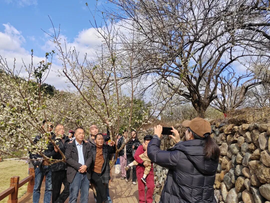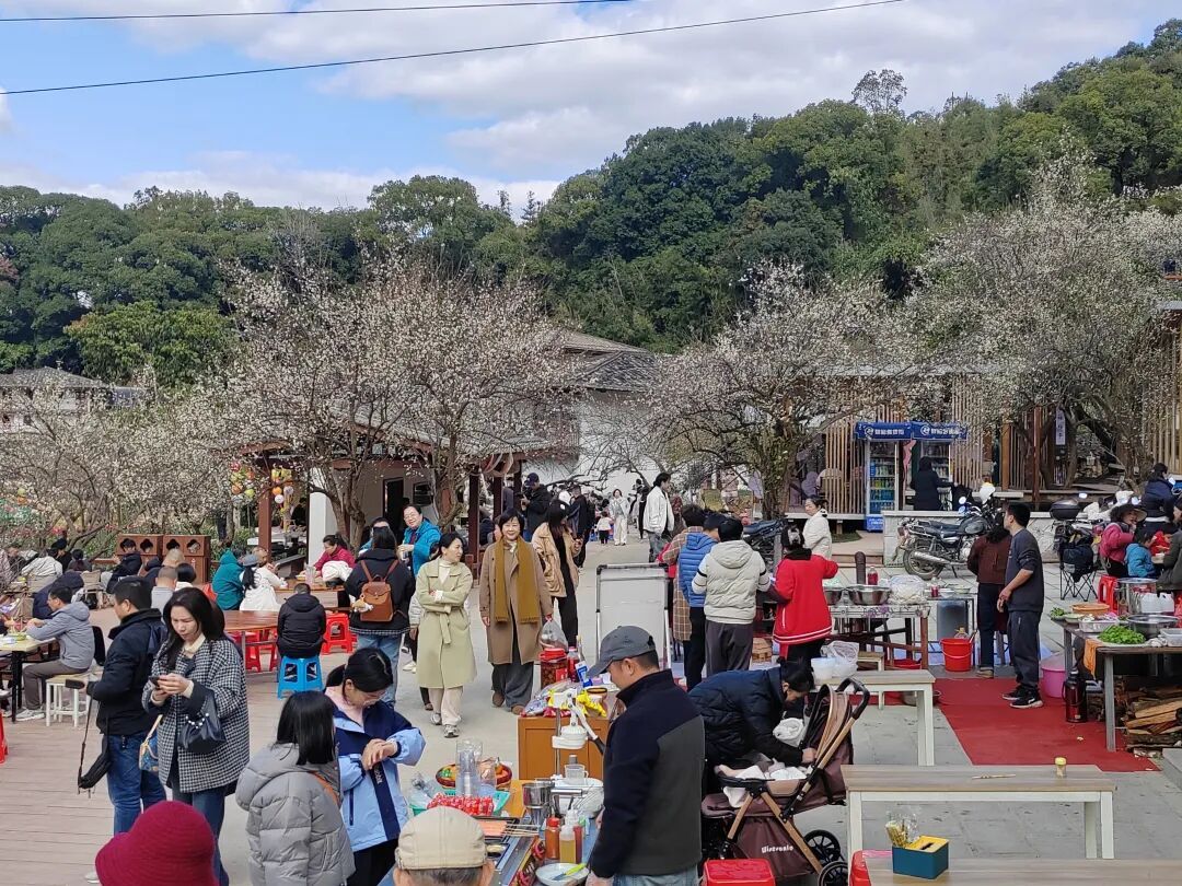 在葛岭镇溪洋村的良埕梅景赏梅区 游人如织、热闹非凡 游客们穿梭在蜿蜒的梅园小径 或驻足花下拍照定格美景 或漫步闲谈感受梅香萦绕 梅园里的露营地更是人气爆棚 大家围炉煮茶、闲话家常 在暖意与花香中尽享轻松惬意的假日时光