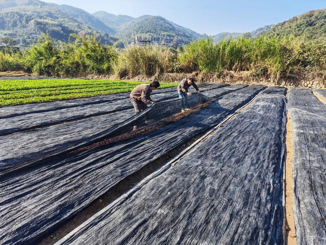 近期 强冷空气持续南下 我县最低气温低至零点 农业生产迎来“抗霜冻”考验 连日来,我县农业专技人员 深入各重点村社、种植基地和农户田间 开展农作物防寒防冻技术指导 将实用的防护知识 和温暖的服务直接送到生产一线 全力保障冬季农作物安全 眼下正是春菜、茼蒿、菠菜 等作物生长的关键期 近日 在塘前乡赤鲤村 湖美蔬菜种植基地的田间地头 一场与寒潮赛跑的“保温战”已打响 乡镇农技人员与基地技术骨干 指导农户为露天蔬菜、幼苗等脆弱作物 加盖黑色防寒网 这种“黑科技”不仅能在夜间 有效减缓地表热量散失 还能在白天避免强光直射 稳定网内小气候 为蔬菜安全度过低温期提供保障 绿健合作社技术人员 黄高明: “这里种的是菠菜种子,我们在上面盖了一张黑色防寒网,确保提高种子的出芽率。”