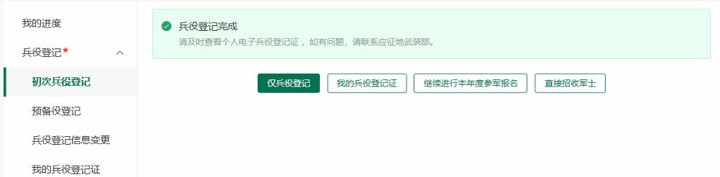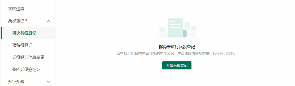 登录系统以后,点击右侧的“ 开始兵役登记 ”进行兵役登记!