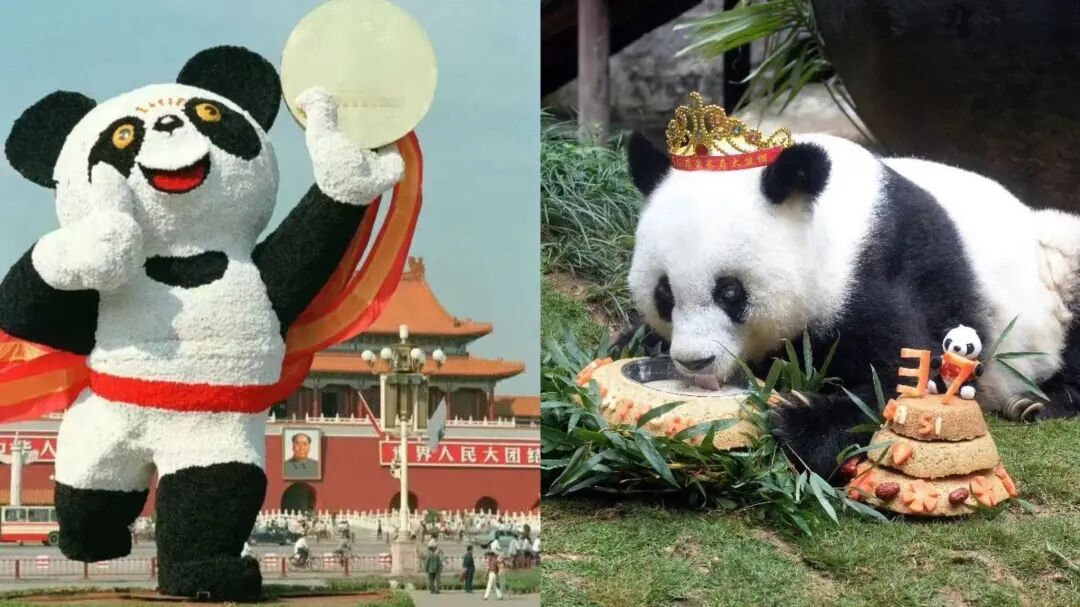 左图:1990年北京亚运会吉祥物熊猫“盼盼”的造型。图源:央视网 右图:大熊猫“巴斯”。图源:福州晚报 “福福”曾在福州熊猫世界生活近十年,也是此次来榕的大熊猫“荣耀”的父亲。 因汶川大地震来福州的大熊猫“雷雷”,正是赠台大熊猫“圆圆”的母亲……