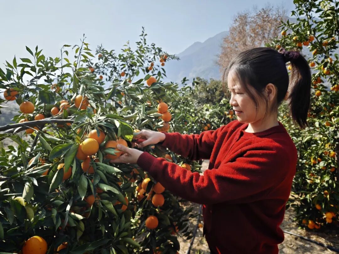 梅香萦绕间 田间地头的丰收气息同样动人 依托得天独厚的土壤条件与科学管理 村里血橙、沃柑、桔柚、雪柑、芦柑等 柑橘类水果果皮薄嫩、果肉饱满多汁 甜度与风味双双在线 当地果园推出了采摘体验项目 让游客在赏梅之余 还能感受田园乐趣