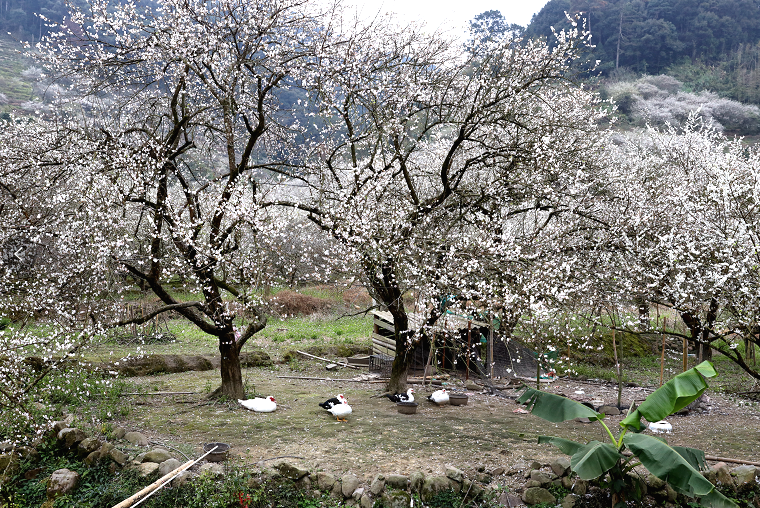冬日的永泰 被一缕缕梅香唤醒 葛岭镇蒲边村的梅香混着果香 城峰镇高峰村的梅海连着山野 两处村庄以梅为媒 正勾勒出生态秀美、产业兴旺的乡村画卷 葛岭镇蒲边村: 梅香伴果香,丰收藏乐趣 作为我县主要青梅产区之一 蒲边村几乎家家户户种有青梅林 眼下 村里盛放的梅花铺展成漫山美景 游人在赏梅景观带中穿梭漫步 沉浸式领略梅海风情