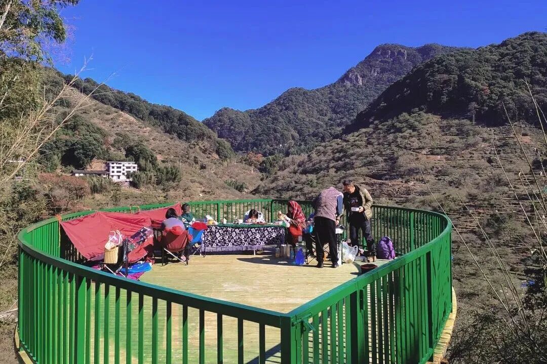 为提升游玩体验 村里贴心搭建了梅花观赏露营平台 配套建设公厕与停车场 依托穴高线扩宽改造工程 全面打通赏梅通道 梅林内悬挂着文明赏梅标语 暗香与文明之风一同弥漫山间