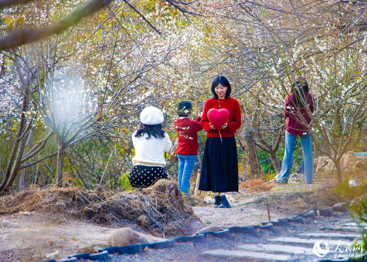 福州永泰素有“中国李梅之乡”的称号。人民网 林铭贤摄 人民网福州1月22日电 (林铭贤)近日,得益于当地温润且光照充足的山地气候,“中国李梅之乡”福建省福州市永泰县的青梅进入盛花期,漫山遍野的白梅花缀满枝头,宛如无边“花海”,引得游人如织,共赏这场冬日盛景。 在永泰县葛岭镇等核心赏梅区,暖阳下梅枝暗香浮动。游人们或漫步花径定格美景,或在梅树下围炉煮茶,沉浸式感受冬日诗意。
