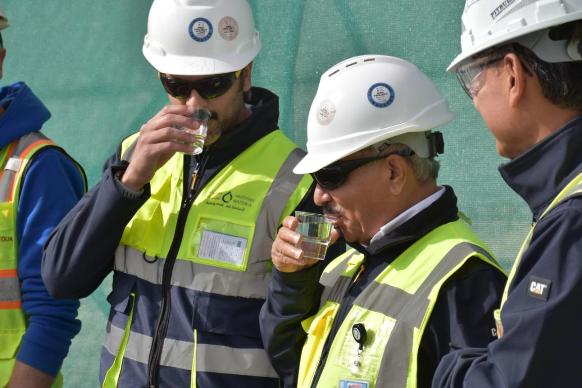 庆典仪式上嘉宾品尝合格水。山东电建三公司供图 迪拜水电局、项目业主对山东电建三公司在项目建设中展现出的高效履约精神、过硬技术实力及超强执行力给予高度赞赏,对项目顺利产出合格水表示热烈祝贺,并现场举杯品尝合格水,共享项目建设成果。该项目的稳步推进,不仅为阿联酋迪拜地区水资源供应安全提供坚实保障,更成为中阿两国在能源与基础设施领域深化务实合作、携手共谋可持续发展的生动典范,为双边经贸合作与人文交流注入了新动能。