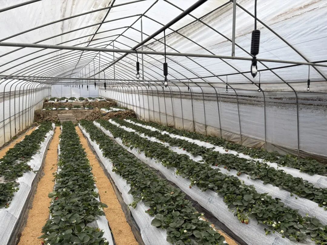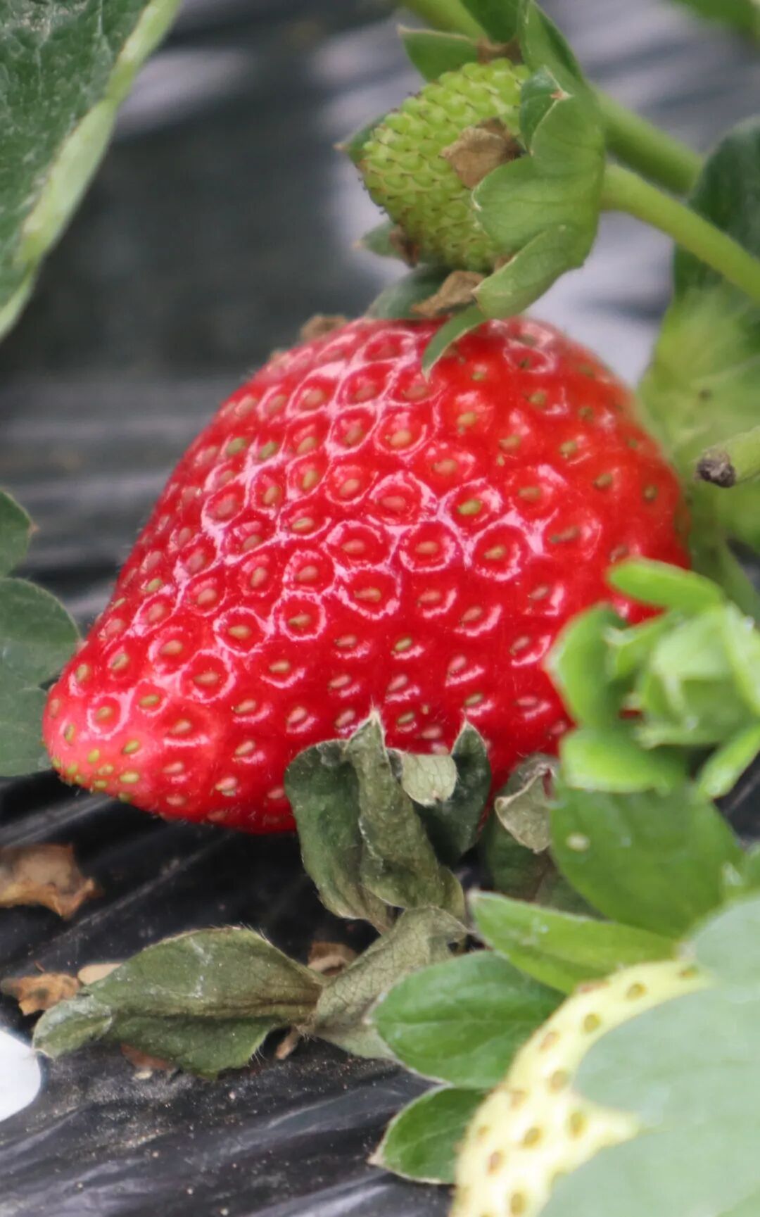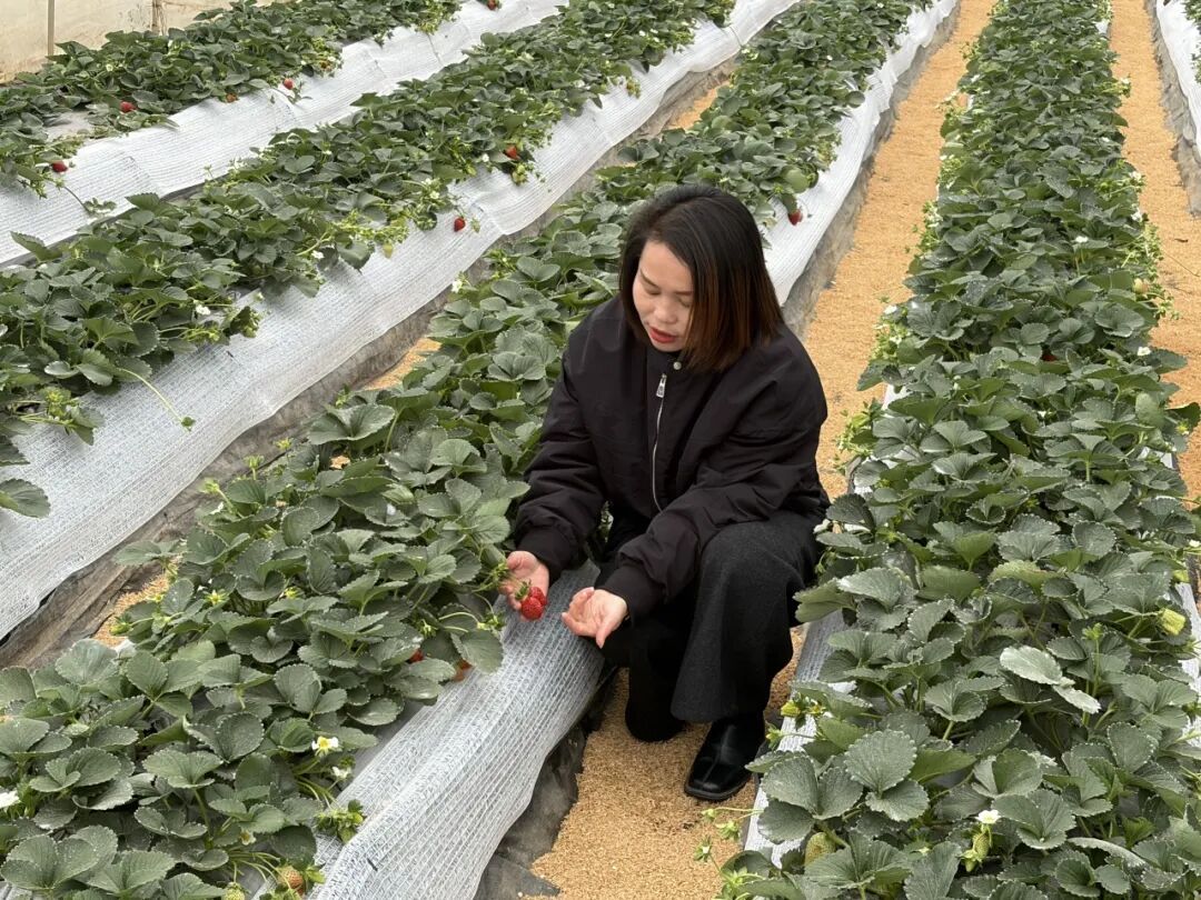据农场负责人叶尔贞介绍 农场总面积约80亩 其中草莓种植区占地5亩 主打精心培育的“牛奶咖啡草莓” 这款草莓不仅色泽鲜艳、果形周正 还带着甜润中糅合淡淡奶香的独特风味 甜度和果味浓度远超普通户外种植品种 金野农场负责人 叶尔贞: “农场坚守生态种植理念,通过铺设隔离网、谷壳覆盖降湿,火焰枪、煨稻壳炭物理除杂,大水漫灌洗盐、种草还田增肥等方式,实现零除草剂、零膨大剂、零农残的‘三零’品质标准。” 此外 草莓大棚内还配备了 多重可调节棚布和自动喷灌系统 一人即可灵活调控温度、湿度 让特色农业更智能化 其中 特色“牛奶咖啡草莓”45元/斤 草莓种植区每亩年产值可达10万元 值得期待的是 农场种植的草莓西红柿 将于下月进入采摘期