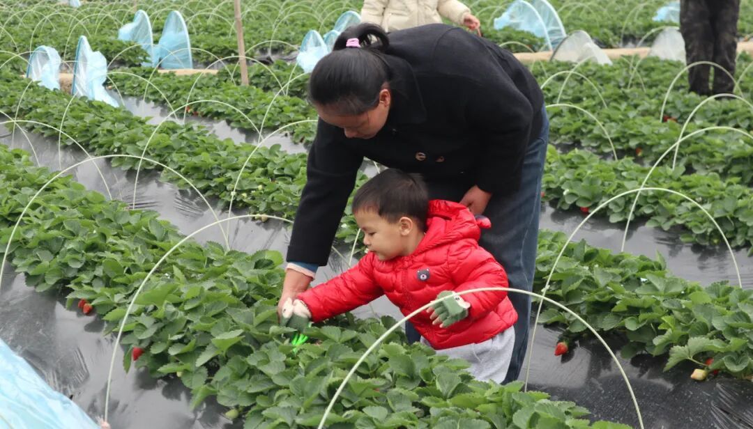 眼下 清凉镇的牛奶草莓采摘园和 梧桐镇坂埕村的金野农场里 一垄垄草莓已进入采摘期 颗颗饱满、鲜甜多汁 正静待游客前来采摘 清凉镇牛奶草莓采摘园 走进采摘园 翠绿的草莓植株整齐排列 鲜红饱满的草莓点缀其间 游客们手提果篮 穿梭于田垄之间 精心挑选成熟的草莓 时不时拿出手机定格这份田园乐趣