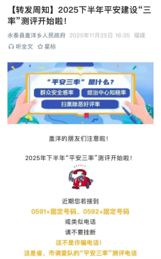 二是线上广泛传播,依托微信公众号、网格群等平台,常态化推送安全防范提示、典型案例解析及平安建设动态,确保预警信息及时触达群众,扩大平安宣传覆盖面和影响力。 ![]() ![]() 三是外部联动注入新活力丰富载体打造特色长效模式。7月,联合福建理工大学管理学院“三下乡”团队,以设立宣传点、入户讲解等形式开展“推普、反诈、禁毒”宣传,并创新举办“星空夜话”特色活动。12月,依托正月十六赶圩日,在联合省、市、县妇联及省妇幼保健院开展的“乡村妇幼健康关爱行动”现场,同步普及平安三率、铁路护路、交通安全等知识,实现平安宣传与民生服务同频共振。