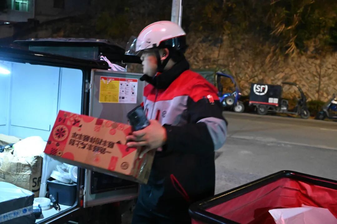 年货寄递需求持续攀升 我县顺丰速运站点 也迎来快件收发高峰期 夜幕中 顺丰速运站点内仍是一派繁忙景象 工作人员坚守岗位、分工协作 连夜投入到包裹打包、 分拣装车的工作中 扫码、贴单、理货等 一系列操作有条不紊 每一个环节都衔接紧密、高效推进 一件件包裹被精准分类后快速装车 满载快件的派件车接连驶离站点 向着各个派送片区疾驰而去 为千家万户的快件送达抢出时间