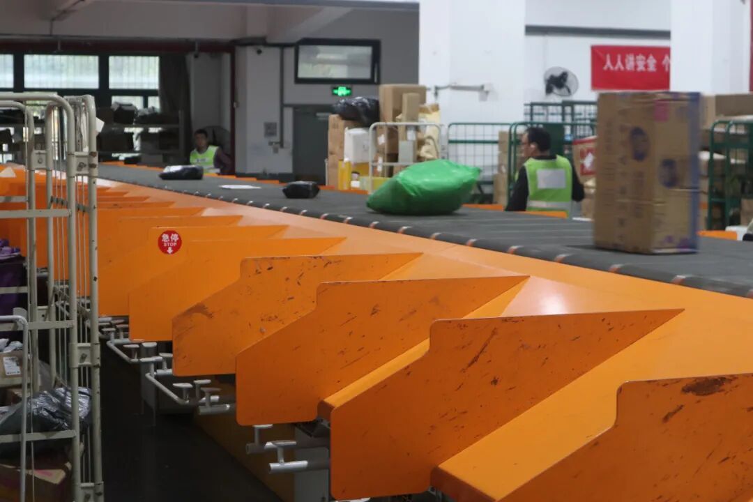 日前 记者走进永泰寄递物流共配中心 早上七点 中心内就已进入忙碌模式 工作人员识码、搬运、集包、分装…… 一套动作行云流水、一气呵成 得益于自动分拣机的投用 工作人员只需将快递的面单朝上 机器就会精准识别信息 将包裹分拨到相应的区域 相比于人工分拣 效率提高了80%以上