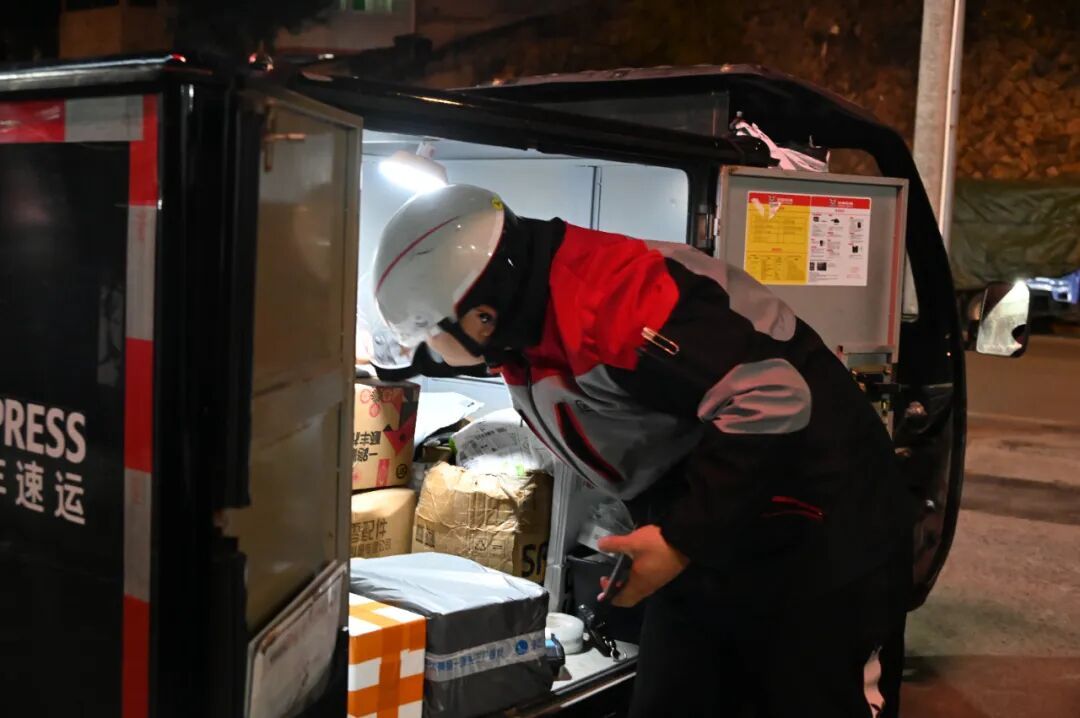年货寄递需求持续攀升 我县顺丰速运站点 也迎来快件收发高峰期 夜幕中 顺丰速运站点内仍是一派繁忙景象 工作人员坚守岗位、分工协作 连夜投入到包裹打包、 分拣装车的工作中 扫码、贴单、理货等 一系列操作有条不紊 每一个环节都衔接紧密、高效推进 一件件包裹被精准分类后快速装车 满载快件的派件车接连驶离站点 向着各个派送片区疾驰而去 为千家万户的快件送达抢出时间