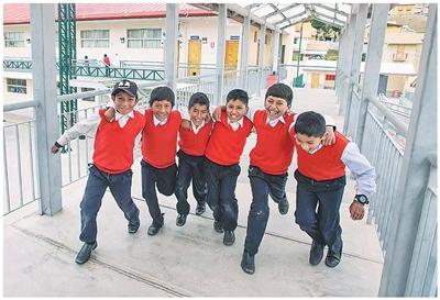 秘鲁拉斯邦巴斯铜矿建造的新富埃拉班巴社区教育综合体内的当地学生。