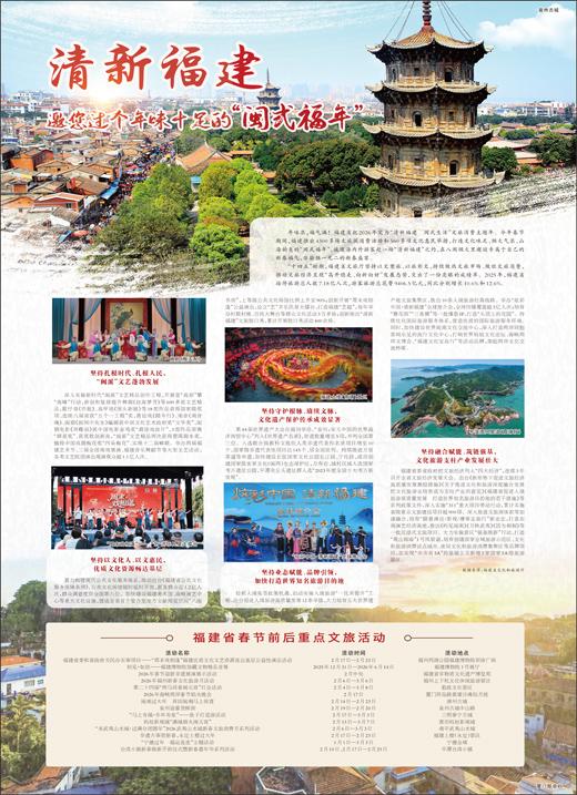 年味浓,福气满!福建省把2026年定为“清新福建 闽式生活”文旅消费主题年。今年春节期间,福建推出4300多场文旅促消费活动和560多项文化惠民举措,打造文化味足、烟火气浓、山海韵美的“闽式福年”,诚邀海内外游客赴一场“清新福建”之约,在八闽烟火里邂逅专属于自己的新春福气,体验独一无二的新春盛宴。 “十四五”时期,福建省文旅厅坚持以文塑旅、以旅彰文,持续做热文旅市场、做旺文旅消费,推动文旅经济呈现“高开稳走、向新向好”发展态势,交出了一份亮眼的成绩单。2025年,福建省接待旅游总人数7.18亿人次,游客旅游总花费9406.5亿元,同比分别增长10.6%和12.6%。 坚持扎根时代、扎根人民,“闽派”文艺蓬勃发展 深入实施新时代“闽派”文艺精品创作工程,开展登“高原”攀“高峰”行动,新创和复排提升舞剧《丝海梦寻》等600多部文艺精品,歌仔戏《侨批》、高甲戏《围头新娘》等18部作品获得国家级奖项、连续八届荣获“五个一工程”奖,莆仙戏《踏伞行》、南音《南音魂》、闽剧《画网巾先生》编剧获中国文化艺术政府奖“文华奖”,闽剧电影《双蝶扇》获中国电影金鸡奖“最佳戏曲片”,3部作品荣膺“群星奖”、获奖数创新高,“闽派”文艺精品两次获得曹禺剧本奖,摘得中国戏剧梅花奖“四朵梅花”、实现十二届蝉联。举办两届福建艺术节、三届全国南戏展演、福建音乐舞蹈节等大型文艺活动,各类文艺院团演出观演观众超1.1亿人次。 坚持以文化人、以文惠民,优质文化资源畅达基层 着力构建现代公共文化服务体系,推动出台《福建省公共文化服务保障条例》,公共文化场馆错时延时开放,惠及群众近1.2亿人次,群众满意度居全国第六位。加快建设福建美术馆、海峡演艺中心等重大文化设施,建成全省首个复合型地方文献阅览空间“八闽书房”,上等级公共文化场馆比例上升至90%;创新开展“周末戏相逢”公益演出,设立“艺”齐乐民星大擂台,打造福建“艺超”,每年举办村歌村晚、百姓大舞台等群众文化活动3万多场;创新推出“清新福建”文旅脱口秀,累计开展脱口秀活动400余场。 坚持守护根脉、赓续文脉,文化遗产保护传承成效显著 第44届世界遗产大会在福州举办,“泉州:宋元中国的世界海洋商贸中心”列入《世界遗产名录》,世遗数量增至5项,并列全国第三位。入选联合国教科文组织人类非遗代表作名录项目增至10个,国家级非遗代表性项目达145个、居全国前列。持续推进万里茶道等申遗,加快建设长征国家文化公园长汀段、宁化段,成功创建国家级客家文化(闽西)生态保护区,万寿岩、城村汉城入选国家考古遗址公园,平潭壳丘头遗址群入选“2023年度全国十大考古新发现”。 坚持业态赋能、品牌引领,加快打造世界知名旅游目的地 抢抓入境免签政策机遇,启动实施入境旅游“一优双提升”工程,出台促进入境旅游高质量发展12条举措,大力培育五大世界遗产地文旅集聚区,推出10条入境旅游经典线路。举办“炫彩中国·清新福建”全球推介会,全网传播覆盖超3亿人次;培育“簪花围”“三条簪”等一批爆款IP,打造“头顶上的花园”。持续优化国际旅游服务体系,营造优质的国际旅游服务环境。同时,加快建设世界闽南文化交流中心,深入打造两岸同胞喜闻乐见的流行文化中心,打响世界妈祖文化论坛、海峡两岸文博会、“福建文化宝岛行”等活动品牌,架起两岸文化交流桥梁。 坚持融合赋能、筑链强基,文化旅游支柱产业发展壮大 福建省委省政府把文旅经济列入“四大经济”,连续3年召开全省文旅经济发展大会。出台《新形势下促进文旅经济高质量发展激励措施》《关于推进文化和旅游深度融合发展把文化旅游业培育成为支柱产业的意见》《福建省促进入境旅游高质量发展 打造世界知名旅游目的地的若干措施》等系列政策文件,深入实施“311”重大项目带动行动,累计实施省级重点文旅建设项目超900项。深入推进文旅商体农等加速融合,培育“跟着演出/影视/赛事去旅行”新业态,打造东南演艺经济高地,推出《屿见闽南》《月映武夷》《因为刺桐》等一批沉浸式文旅项目。大力实施景区“强基焕新”行动,打造“观山阅海”1号风景道,培育创建国家全域旅游示范区、文化和旅游消费试点城市、夜间文化和旅游消费集聚区等品牌项目,在实现“市市有5A”的基础上又新增2家国家5A级旅游景区。 数据来源:福建省文化和旅游厅 |