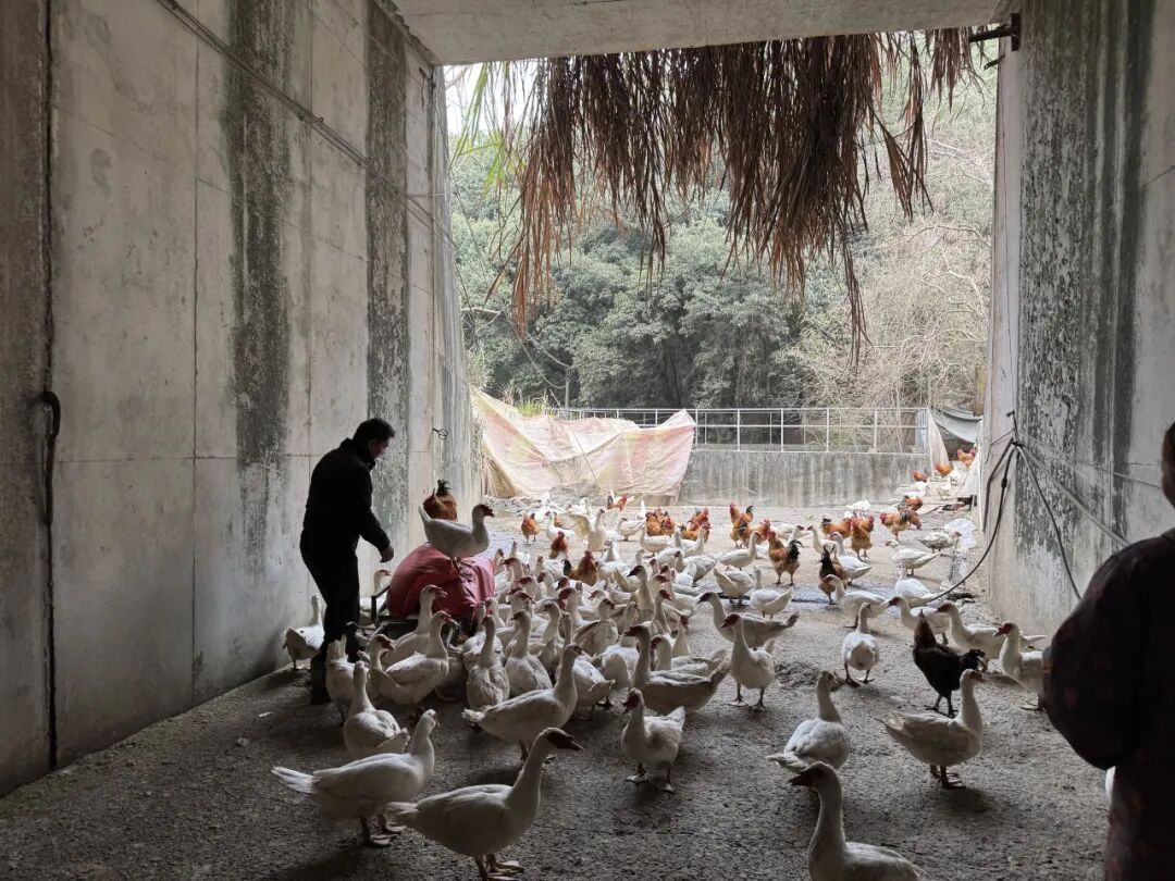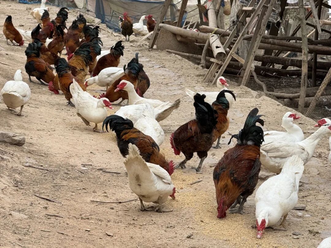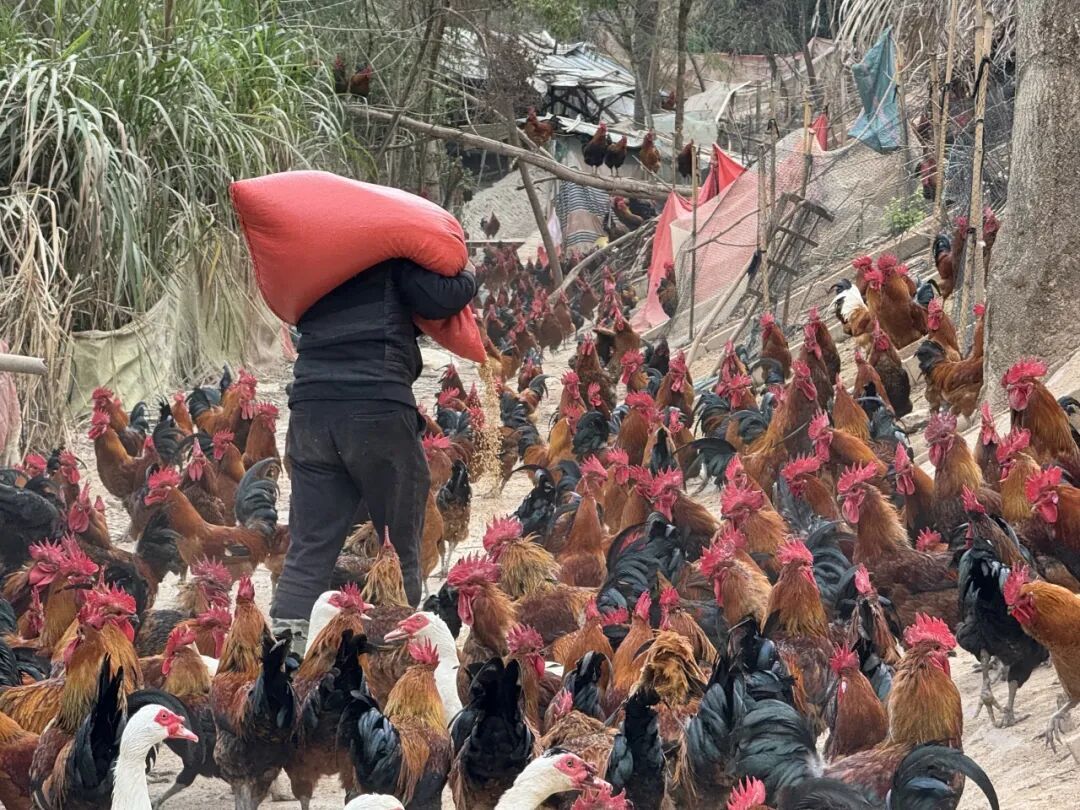 “我们主打走地鸡、跑山鸡,全是放养模式,活动量大,肉质更紧实口感更好。鸡鸭都吃五谷杂粮、稻谷、剩饭、菜叶,主打绿色健康。”