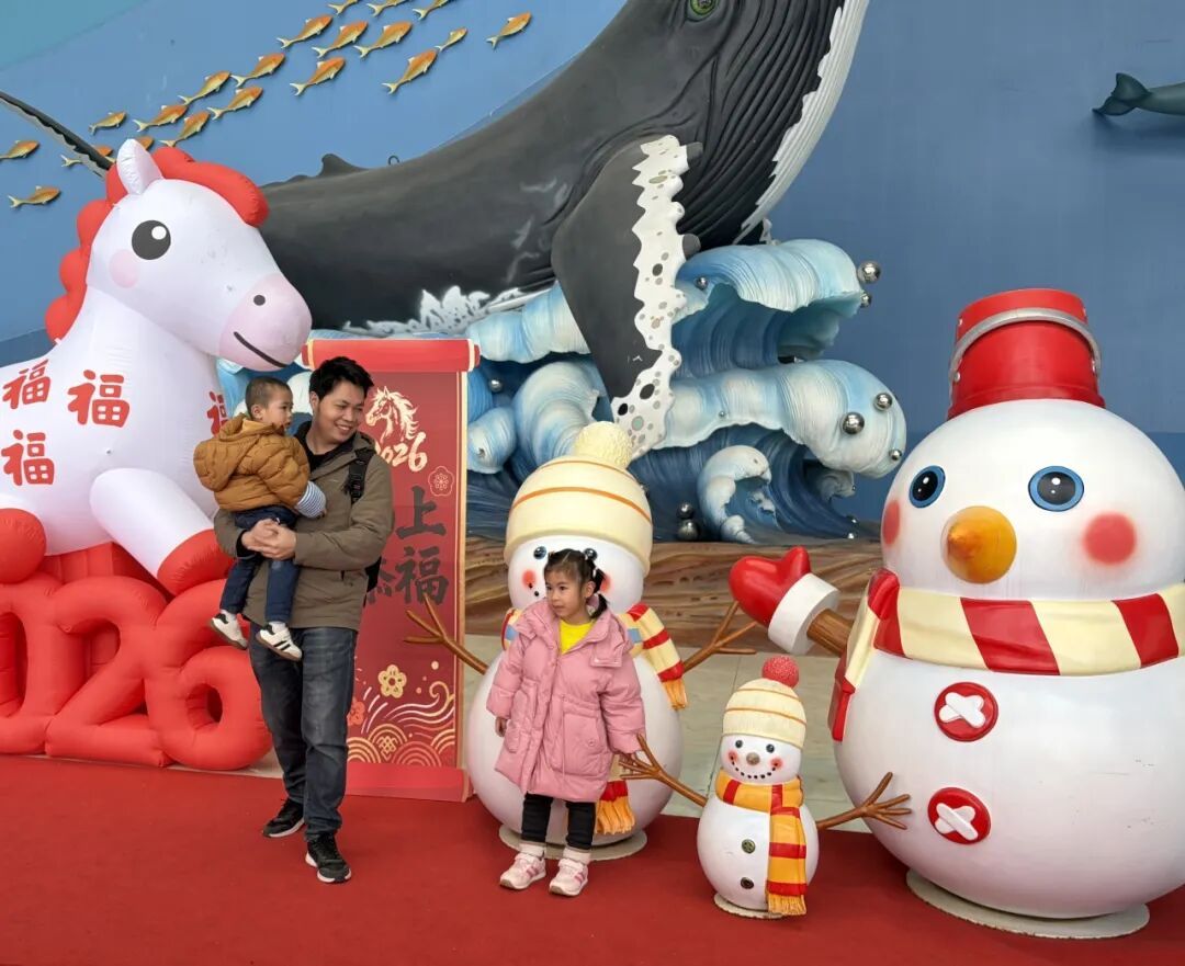 马年新春佳节 我县文旅市场暖意涌动、活力迸发 多地迎来旅游热潮 游客接待量持续攀升 呈现出一派热闹红火的假日景象 其中 葛岭镇凭借丰富的文旅资源和特色活动 成为游客欢度新春的热门目的地 为我县文旅市场“开门红”注入强劲动力 海洋世界添年味 八仙送福贺新春 作为葛岭镇文旅打卡的核心地标 福州欧乐堡海洋世界成为 此次春节假期的“流量担当” 走进景区,现场人潮涌动 售票窗口前早已排起队伍 游客们有序购票、笑意盈盈 满心期待开启一场 兼具趣味与科普的海洋之旅