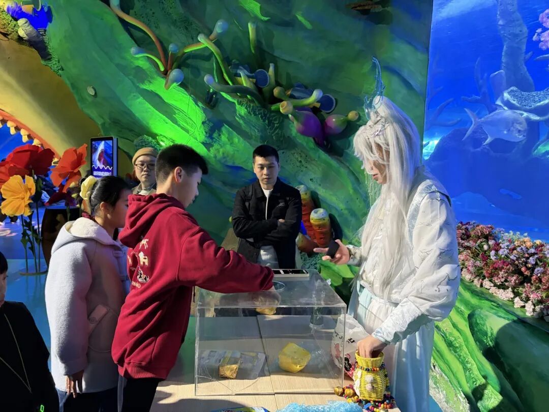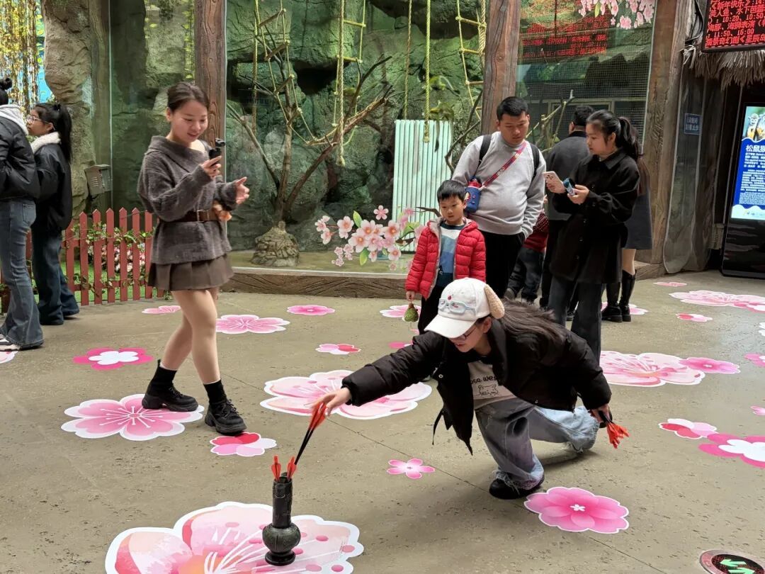 为让游客在游玩中感受浓浓的新春年味 欧乐堡今年特别推出“超强年味模式” 精心策划了一系列特色活动 不仅有《八仙送福》等新春限定版水下表演 还有十余场主题演艺轮番上演 同时设置了NPC互动娱乐项目 全面提升游客的沉浸式体验感 在水下剧场 游客们欣赏完充满祝福的限定演出后 还能与“财神爷”近距离互动 收获新春好运 在桃花岛区域 投壶、猜拳等传统新春游戏 吸引了众多家庭踊跃参与 现场笑声不断、气氛热烈非凡