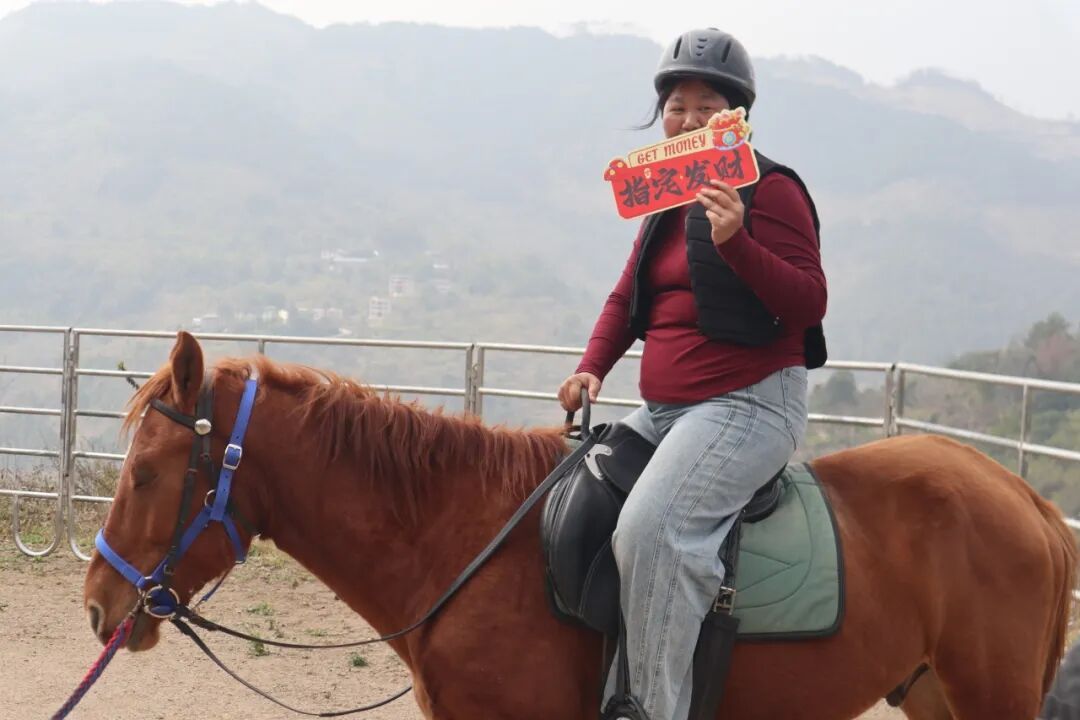 温泉区内 热气氤氲、暖意袭人 游客们置身于温润的泉水中放松身心 尽情享受假日的惬意与安宁 景区餐厅内 地道的本地特色美食香气扑鼻 吸引了众多食客驻足品尝 味蕾与年味在此刻完美交融 此外,景区还精心安排了 篝火歌舞、移动KTV和特色小吃等活动 游客们围坐其间、载歌载舞 欢声笑语不断 初一至初三期间 景区更是安排了舞龙舞狮队伍巡游表演 为游客送去满满的新春祝福与吉祥好运 游客 何洪其: “我这次专门来赤壁泡温泉,感受这里的自然风光。这边山清水秀、环境绝佳,泡在温泉里看着窗外的风景,感觉整个人都轻松下来了。而且今年景区的活动特别丰富,上午带孩子体验剪窗花,下午泡温泉放松,晚上还准备去参加篝火晚会,一天的行程充实又快乐。” 策马摘果农家乐 围炉煮茶田园香 除了海洋世界和赤壁景区 葛岭镇溪洋百花农庄也成为 马年新春市民出游的热门之选 在农庄的马术体验区 游客们穿戴好护具、掌握上马要领后 在教练的协助下进行骑行体验 不远处的烧烤区 早已炊烟袅袅、香气四溢 丰富的食材在炭火上滋滋作响 游客们一边享用美食 一边畅谈欢笑