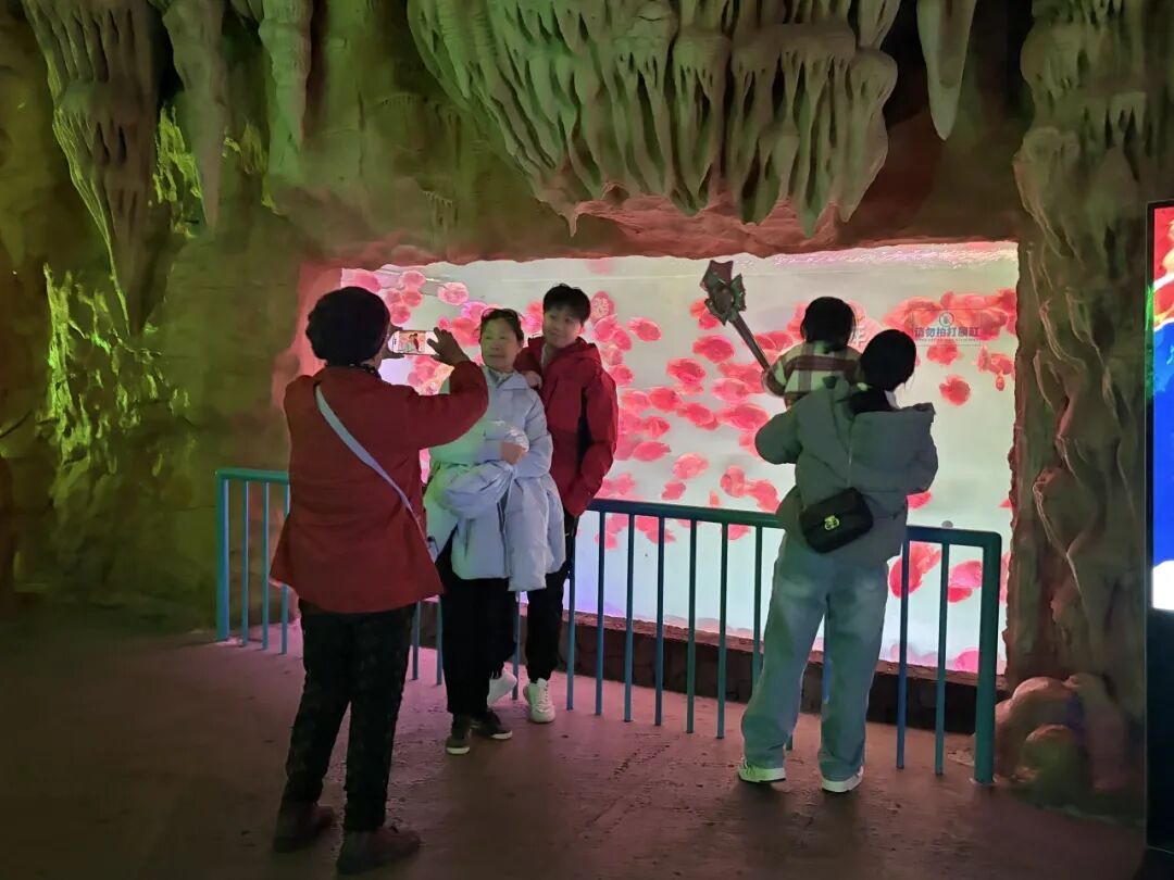 在景区的非遗手工坊区域 亲子家庭成为绝对主角 大人们带着孩子兴致勃勃地体验 拓福印、剪窗花等传统手工艺 将浓浓的年味与新春祝福 化作一份份独具意义的节日纪念 而一旁的XR体验馆内 则呈现出另一番热闹景象 游客们佩戴设备 沉浸在虚实交织的奇幻世界中 近距离感受科技带来的视觉冲击 传统与现代的碰撞 让假日体验更加丰富多元
