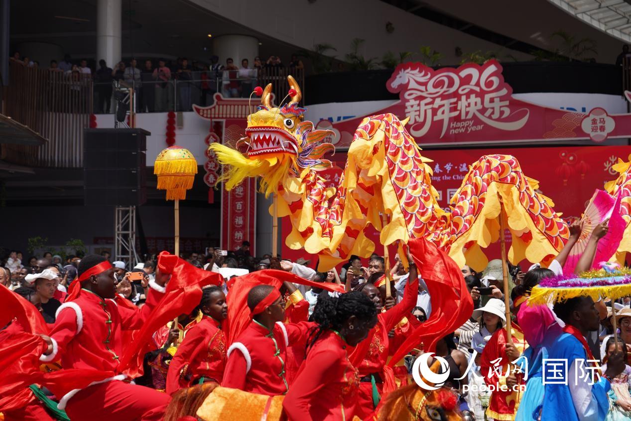 在第八届肯尼亚华侨华人春节联欢晚会上,当地青年演唱歌曲。人民网记者 黄炜鑫摄 大秧歌、舞狮、传统戏曲、武术、傣族舞、新疆舞、蒙古舞等特色表演引得阵阵喝彩;为石膏小马绘制缤纷色彩、剪窗花、写春联、制作糖画等文化摊位上坐满了前来体验的民众;饺子、炒面、肉夹馍等中国传统美食让人赞不绝口……来自当地多所学校的一千多名师生与旅肯华侨华人齐聚内罗毕大学孔子学院举办的2026欢乐春节之骐骥驰骋中国年暨庆祝2026年“中非人文交流年”活动现场,共庆新春。 “新年好!祝马年大吉!”学习中文已经有3年的杰弗里·卡马乌用中文送上新年祝福。他告诉记者,自己对中国传统戏曲非常感兴趣,现正申请加入孔院的戏剧社团。 “每年欢庆春节时,我总会感慨中国生肖的深邃智慧。”内罗毕大学副校长莱奥妮达·凯鲁博表示,“今年恰逢象征奔腾的马年,展望未来,让我们继续从这种奋进精神中汲取力量。愿新春成为加深情谊、开拓创新、赋能青年绽放潜力的契机。愿肯中友谊如常青藤蔓,日日繁茂。”