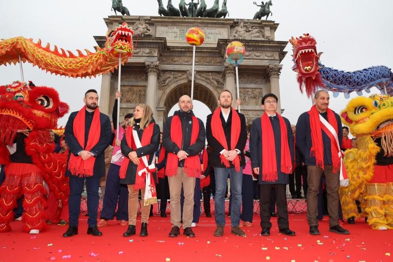 当地时间3月1日,意大利米兰地标建筑和平门广场锣鼓喧天,彩旗飘扬,由米兰侨界联合主办的“喜迎新春·舞龙舞狮”大联欢活动在此盛大举行。约5万名中意各界友好人士、旅意侨胞及当地民众齐聚一堂,同庆佳节。