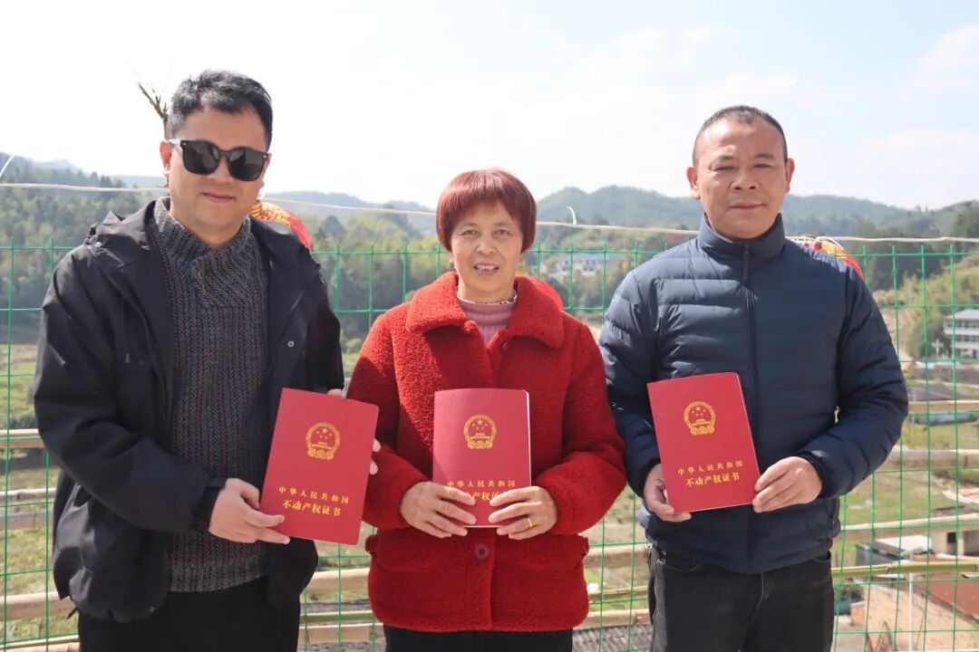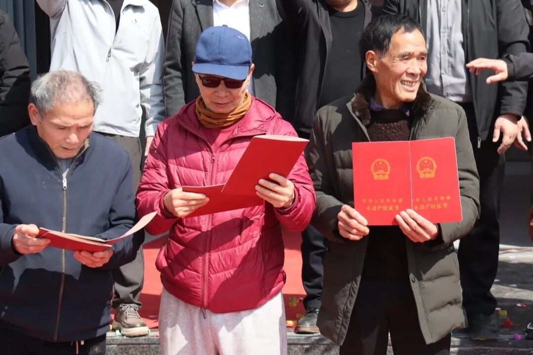 不一会 28户村民喜提专属“红本本” 大家手持崭新的不动产权证书 脸上洋溢着难以掩饰的喜悦 村民 黄建清: “今天拿到不动产权证,我心里特别激动,特别踏实!此前一直为办证事宜操心,多年的烦心事终于解决,真心感谢乡政府和各部门为民办实事、高效推进工作的贴心服务。”
