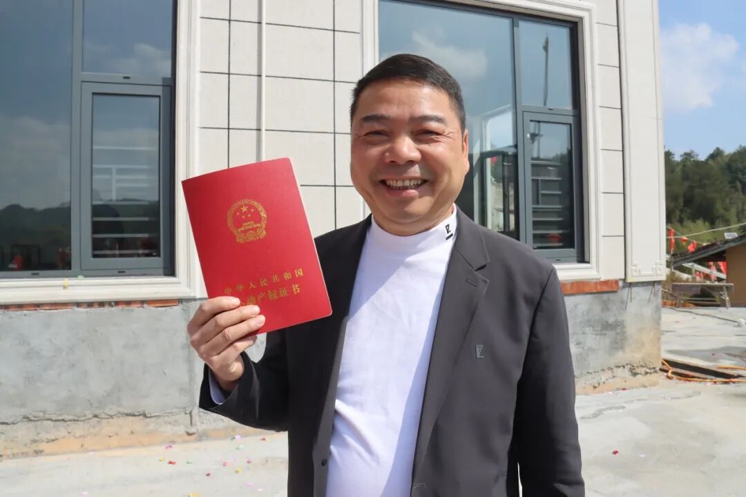 近年来 我县聚焦村民建房需求 积极整合土地资源 采取“统一规划、统一设计、 统一配套、统一办证、统一管理”模式 统筹规划建设村民住宅小区 实现“政府规范报批、村委组织引导、 村民按需建房”的工作局面 为群众提供便捷高效的服务 霞拔乡党委统战委员 黄身彬: “南坑村村民住宅小区的建成,不光解决了群众的住房难题,更重要的是留住了人才、凝聚了人心。此次联合颁证,就是给广大住户吃下一颗‘定心丸’。历经三年建设,这本不动产权证书从法律层面确认了住户对房屋的所有权,标志着小区正式从建设期转入管理期。祝愿各位业主往后的日子越过越红火!”