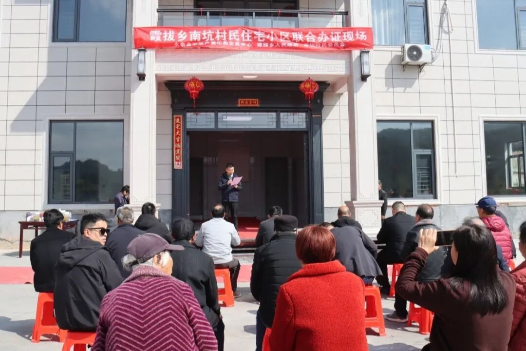 3月10日上午 霞拔乡南坑村村民住宅小区里喜气洋洋 县不动产登记和交易中心 联合霞拔乡人民政府、南坑村民委员会 在这里开展联合办证活动 让村民享受到“家门口就拿证”的便捷服务