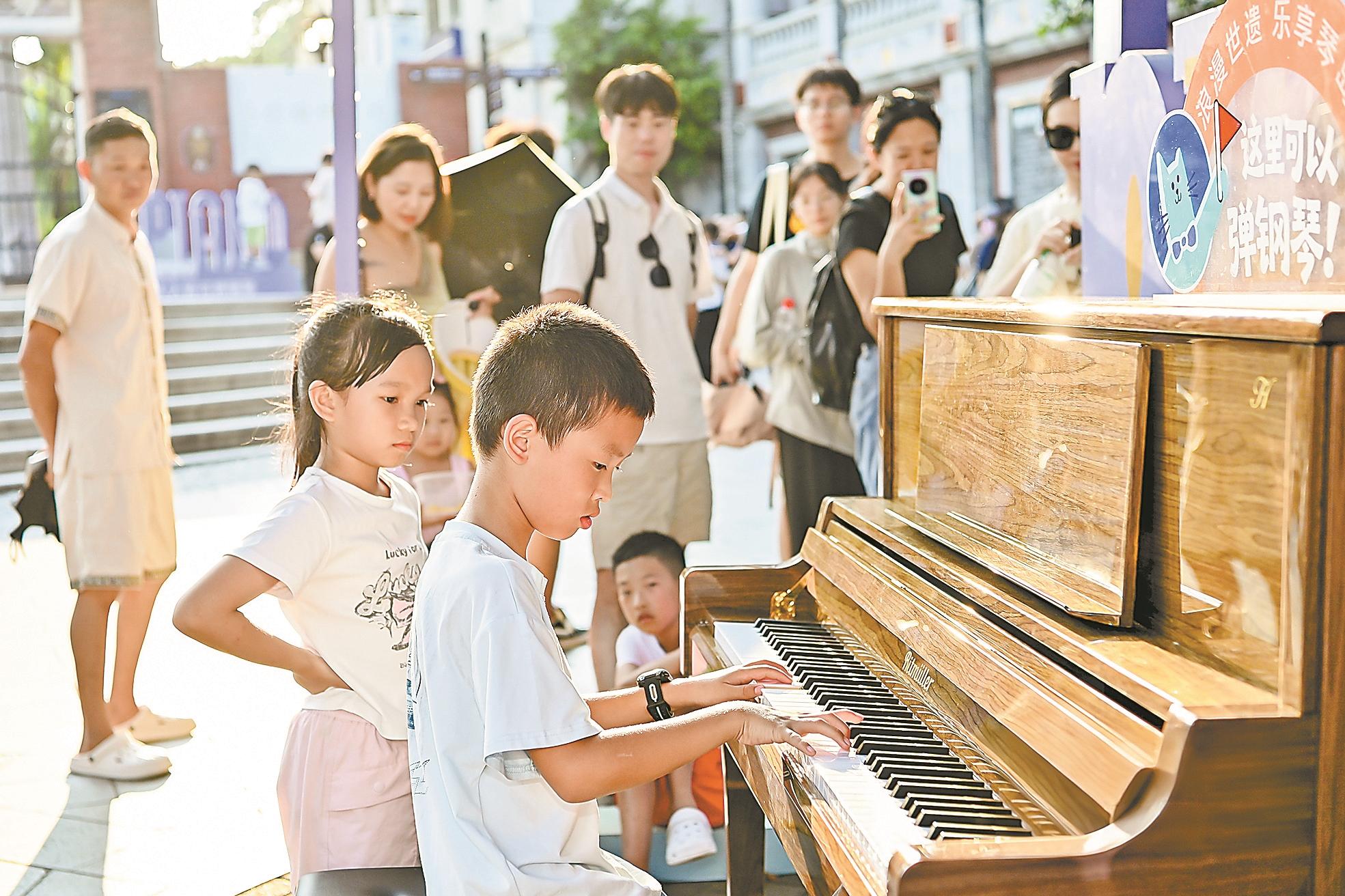 厦门鼓浪屿的“流动乐章”钢琴艺术演奏点,儿童在即兴表演。(资料图片) 两会连线 海丝遗珍 历久弥新 3月6日,记者随“感知幸福中国福建行”参访团走进泉州市丰泽区东海街道蟳埔村,只见游客们头顶的簪花围犹如一片四季不败的花海。 “男生也可以簪花吗?”首次来到泉州的CGTN英国籍记者Kelechi对簪花围慕名已久。走进簪花体验店,他迅速挑选好心怡的马面裙与簪花发箍,迫不及待地“变装”,并邀上同伴在村落四处“打卡”。详情>>> 朱子文化 融通中外 早春三月,草木蔓发。第三届武夷论坛将于3月22日在武夷山开幕,相关单位正紧锣密鼓推进筹备事宜。 自2024年3月首次在武夷山朱熹园启幕以来,武夷论坛已成为海内外学者对话中华文明的重要平台。本届论坛期间,百余名中外学者、嘉宾将再度聚首,探讨新时代中国特色社会主义与中华优秀传统文化传承发展。详情>>>