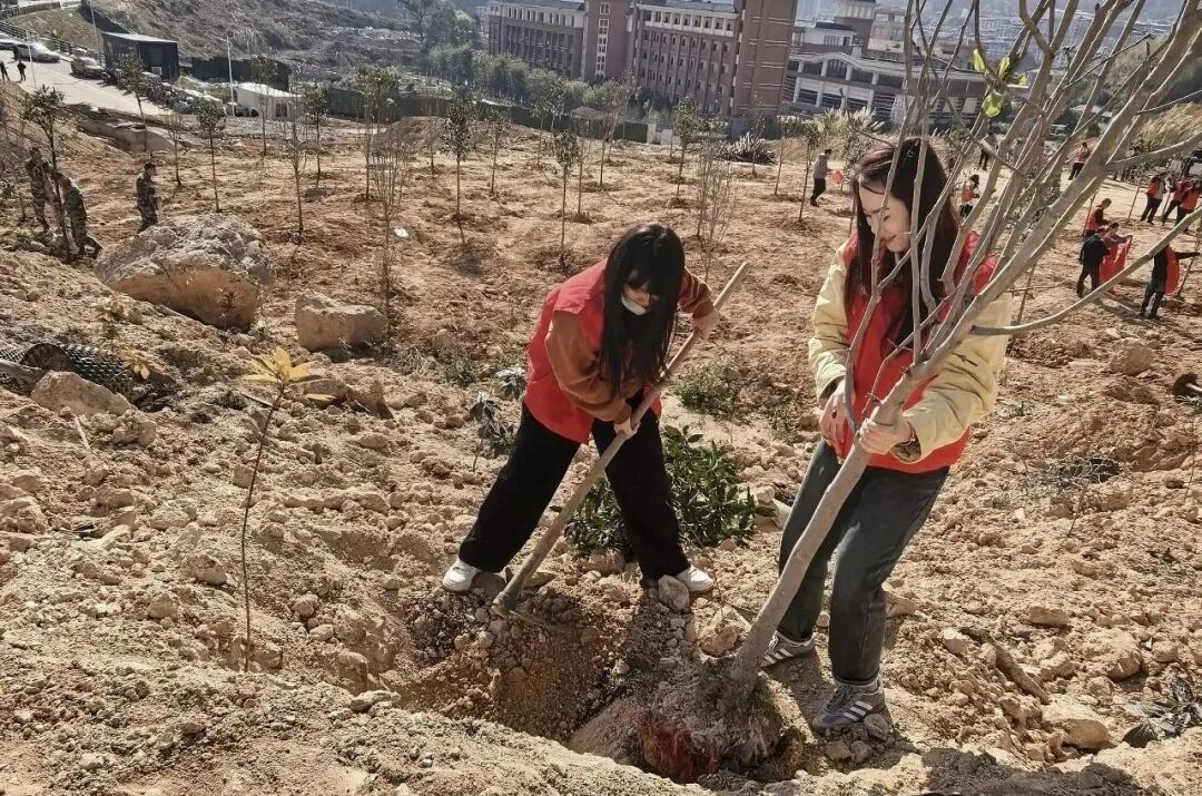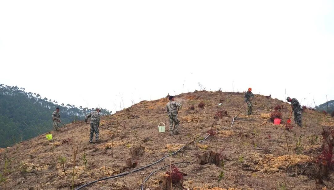 除嵩口镇着力推进产业造林外 城峰镇立足城区周边区位优势 聚焦生态美化与文旅融合发展 在山体坡面 重点栽植木荷、火力楠、山樱花、 南酸枣、无患子等景观苗木 让青山覆绿添彩 既筑牢生态屏障 又为文旅融合发展注入自然生机 城峰林业工作站站长 黄小良: “我们从3月2日启动春季植树造林工作,抢抓当前有利时节,全力组织施工。截至目前,已完成造林380亩,栽种各类景观苗木50620株,整体进度符合预期。下一步,我们将严格把好苗木质量和栽植标准,强化后期管护,确保造林成活率。”