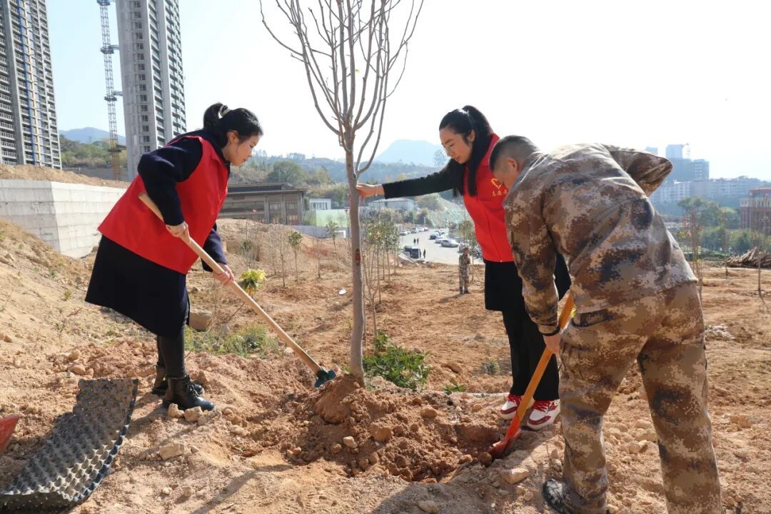 春风催新绿,植树好时节 3月12日上午 永泰县四套班子领导 来到城峰镇龙峰村小东坑 与干部群众一起参加义务植树活动 共同为永泰增绿添彩