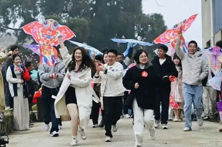 现场还精心设置了互动环节 “桃林寻宝”妙趣横生 “一箭倾心”射箭游戏浪漫升温 “桃花运风筝”放飞天空 趣味满满的游戏打破陌生隔阂 欢声笑语萦绕林间 青年们漫步葱郁柳杉林 一同品尝精致茶歇、 交换联系方式、执笔书写给未来的书信 在轻松惬意的氛围中慢慢相知 让春日邂逅变得温暖而深刻 活动参与者 陈智毅: “这次活动让我觉得格外开心,不仅能欣赏漫山桃花的盛景,还能体验射箭、放风筝等丰富项目,沉浸式感受春日乐趣。最难得的是结识了很多志同道合的青年朋友,满满的参与感和体验感,就是此行最大的收获。” 匠心打造爱情IP 精准服务青年婚恋 针对当代青年工作繁忙、社交圈有限、 婚恋交友需求迫切的现状 永泰县聚焦青年急难愁盼 以此次桃花季活动为契机 深耕单身青年联谊交友服务 创新性将百亩桃林的自然盛景、 百年柳杉的祈福寓意 与古厝乡愁的人文情怀深度融合 打造福州周边首个以“古树+古厝+桃花” 为核心场景的沉浸式爱情IP 让自然风光成为缘分纽带 让民俗底蕴赋能交友体验 让青年在山水间自在交友、邂逅知音