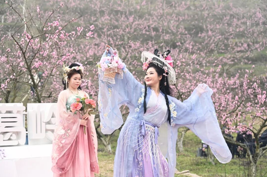 古韵启幕赴春宴 寻缘邂逅满桃林 活动在唯美雅致的古风表演中启幕 身着传统汉服的舞者 身姿翩跹、衣袂飘飘 搭配悠扬婉转的琴瑟和鸣 瞬间将现场宾客拉入诗情画意的古典意境 启动仪式上 主办方详细推介了葛岭镇及巫洋村 特色文旅资源、精品游玩线路 让到场嘉宾提前领略这片古村山水的独特魅力