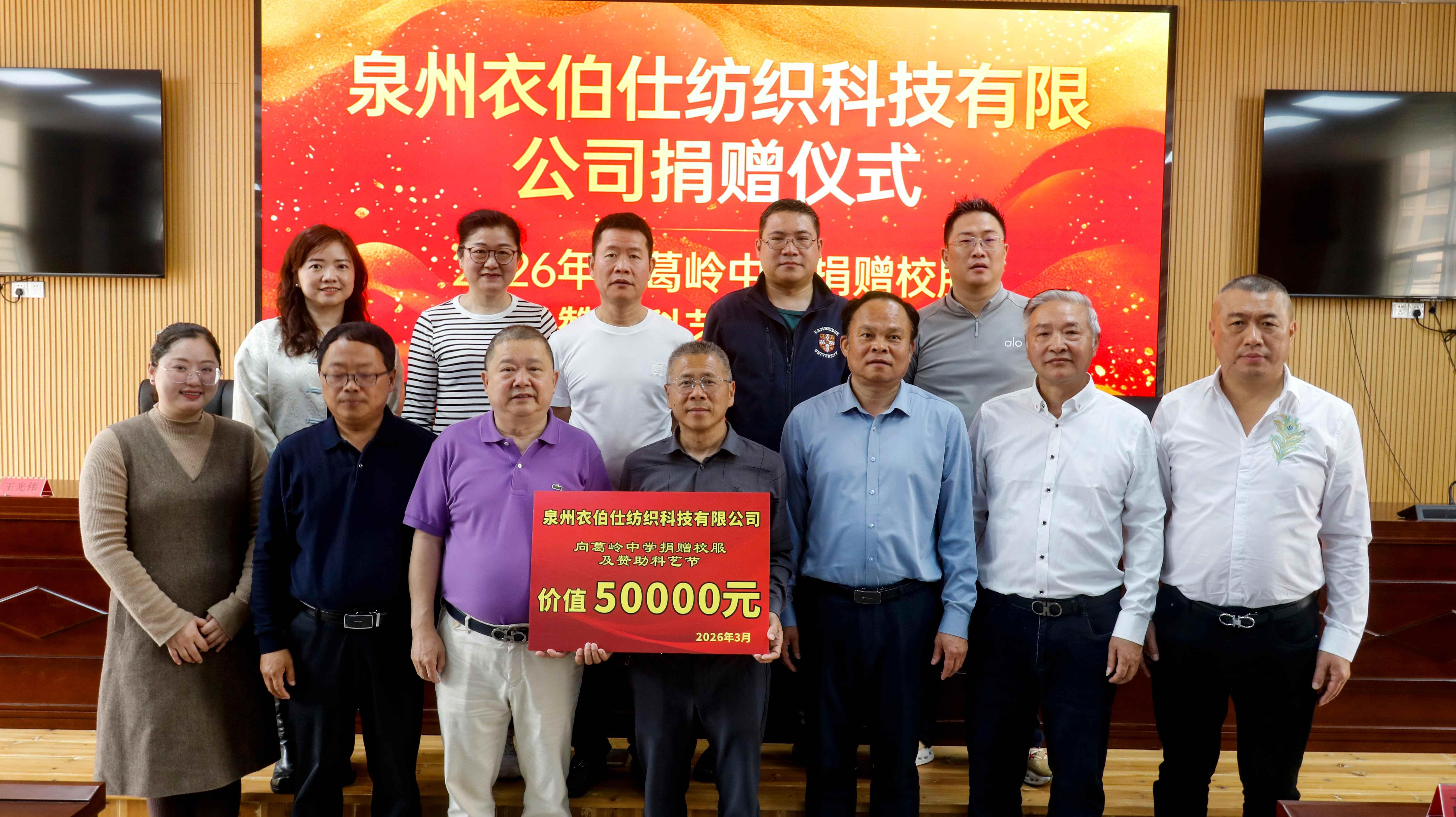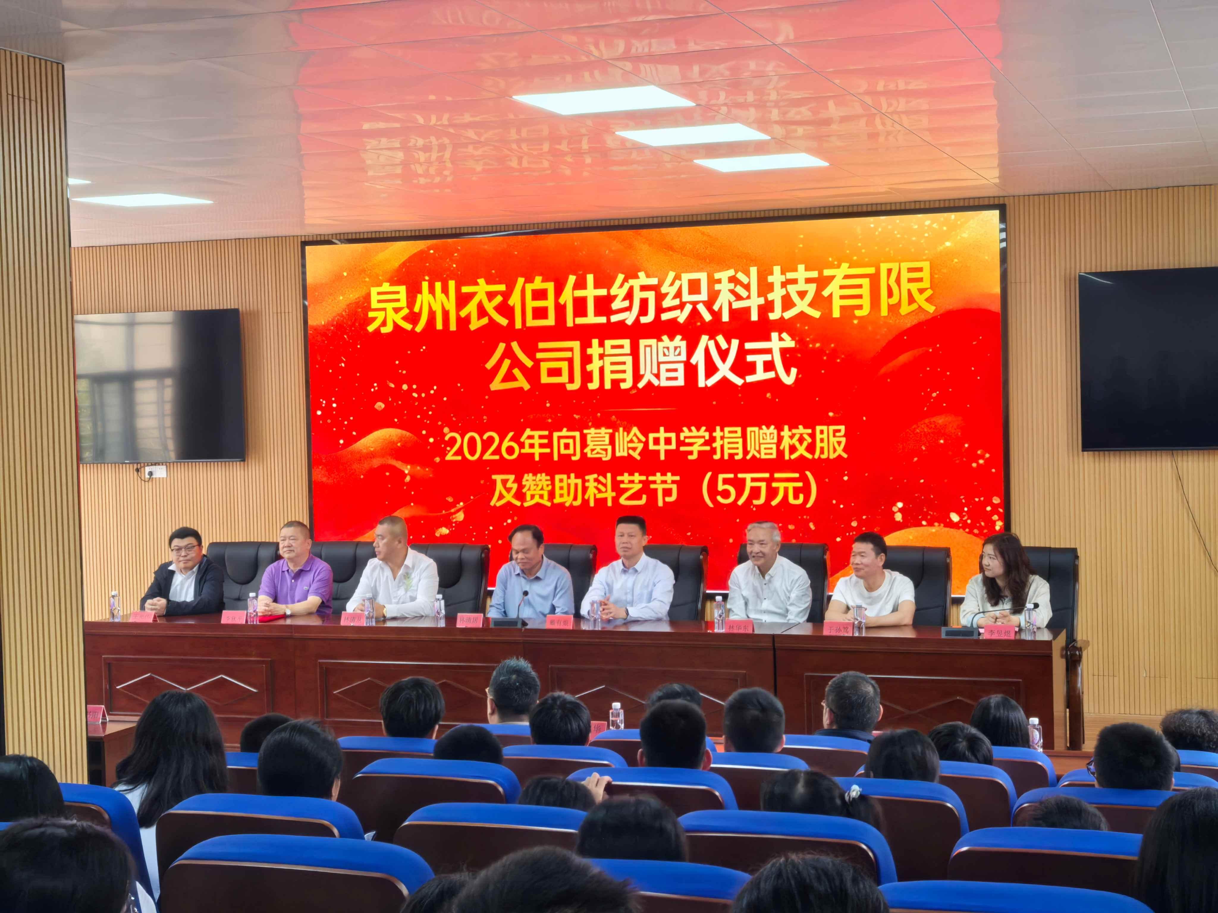 仪式上,校长代表学校致辞,向校友及各位领导嘉宾的到来表示欢迎与感谢;泉州衣伯仕纺织科技有限公司总经理李昱煜发表讲话,传递企业对学子的殷切期盼。随后举行爱心捐赠交接仪式,校友企业代表移交爱心校服与科艺节赞助捐赠牌,校方为校友颁发捐赠证书,定格暖心瞬间。学生代表上台发言,用朴实的话语表达感恩之情,立下刻苦学习、不负期许的誓言。民进福建省委社会服务专委会主任林清居作总结讲话,对此次捐赠善举予以高度肯定,勉励学子以奋斗回馈关爱。 此次捐赠仪式,不仅为学子带来物质关怀,更传递了珍贵的爱心与温暖。葛岭中学全体师生将把这份关爱转化为前行动力,深耕教育教学,培育时代新人,不负社会各界的关心与厚望。 |